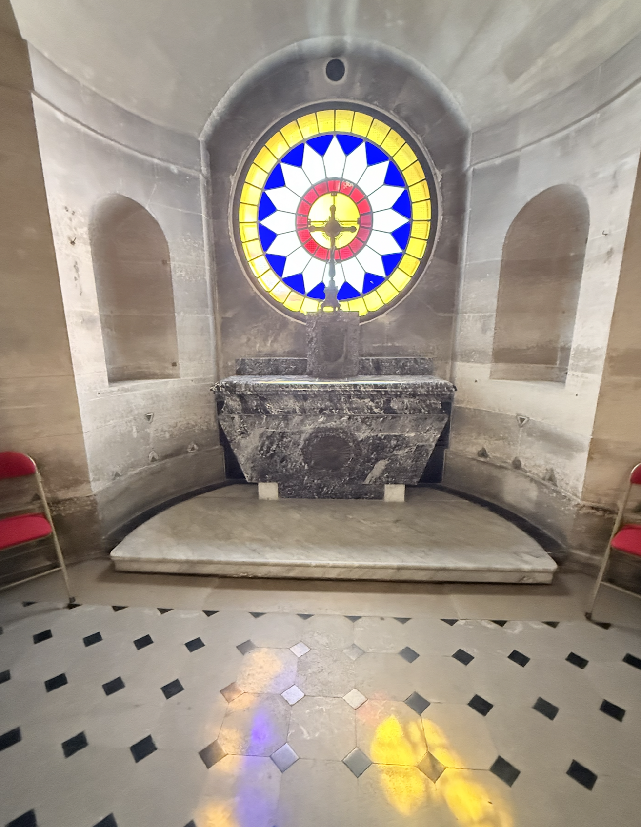 The most poignant part of the monument is in the crypt below. In a small chapel, a black and white marble altar that marks the exact spot where they had spent 22 years in an unmarked grave. A beautiful stained glass window lets in the softest light as you quietly take in the moment. Imagine Marie-Thérèse visiting this same spot every day with her parents, whom she lost too soon.