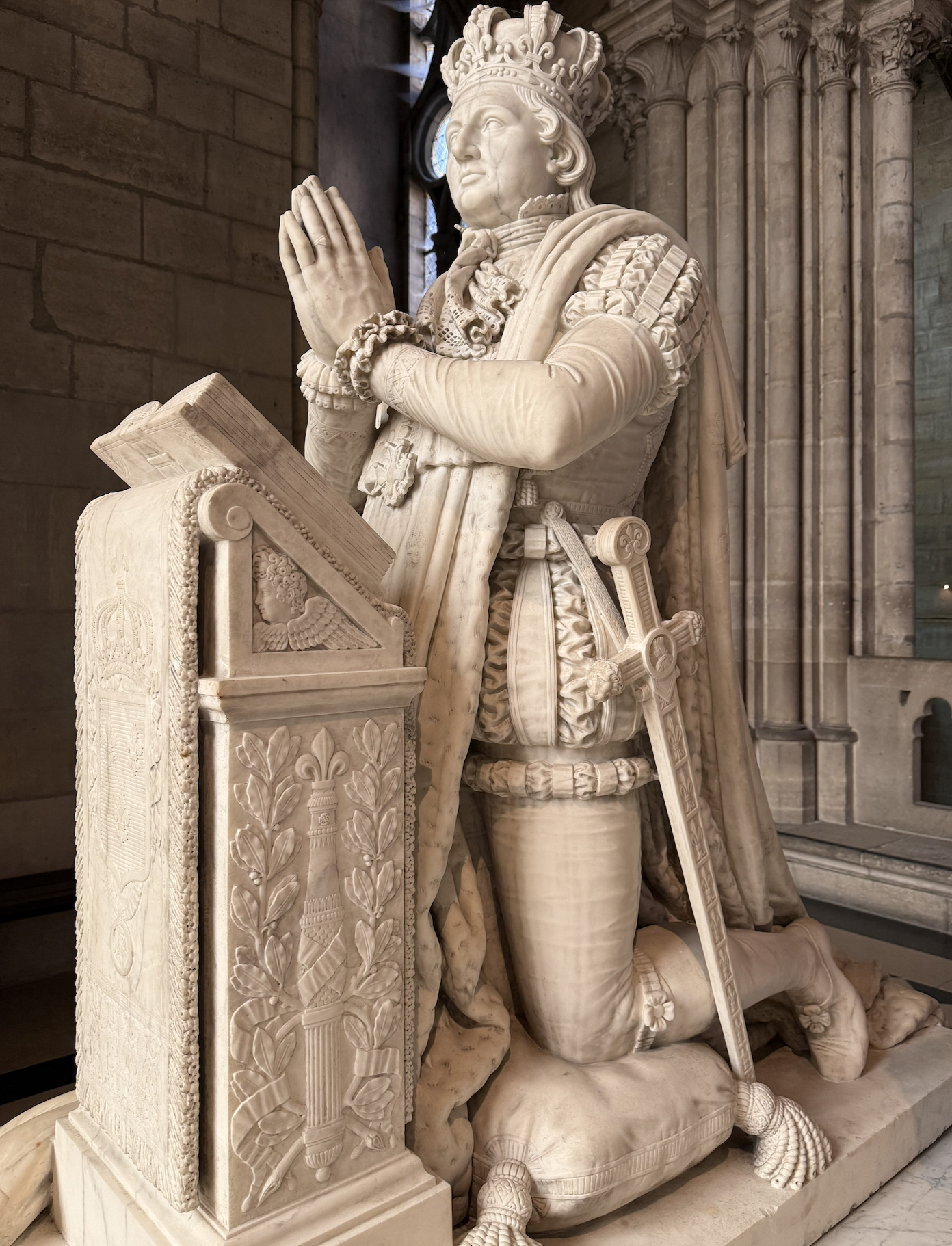On April 24, the king ordered the construction of a new chapel for the basilica, dedicated to the couple. Edme Gaulle was commissioned to sculpt the statue of Louis XVI and Marie Antoinette, Pierre Petitot. The chapel as imagined never came to be, but the statues can be seen today, and I will never forget the first time I saw them.