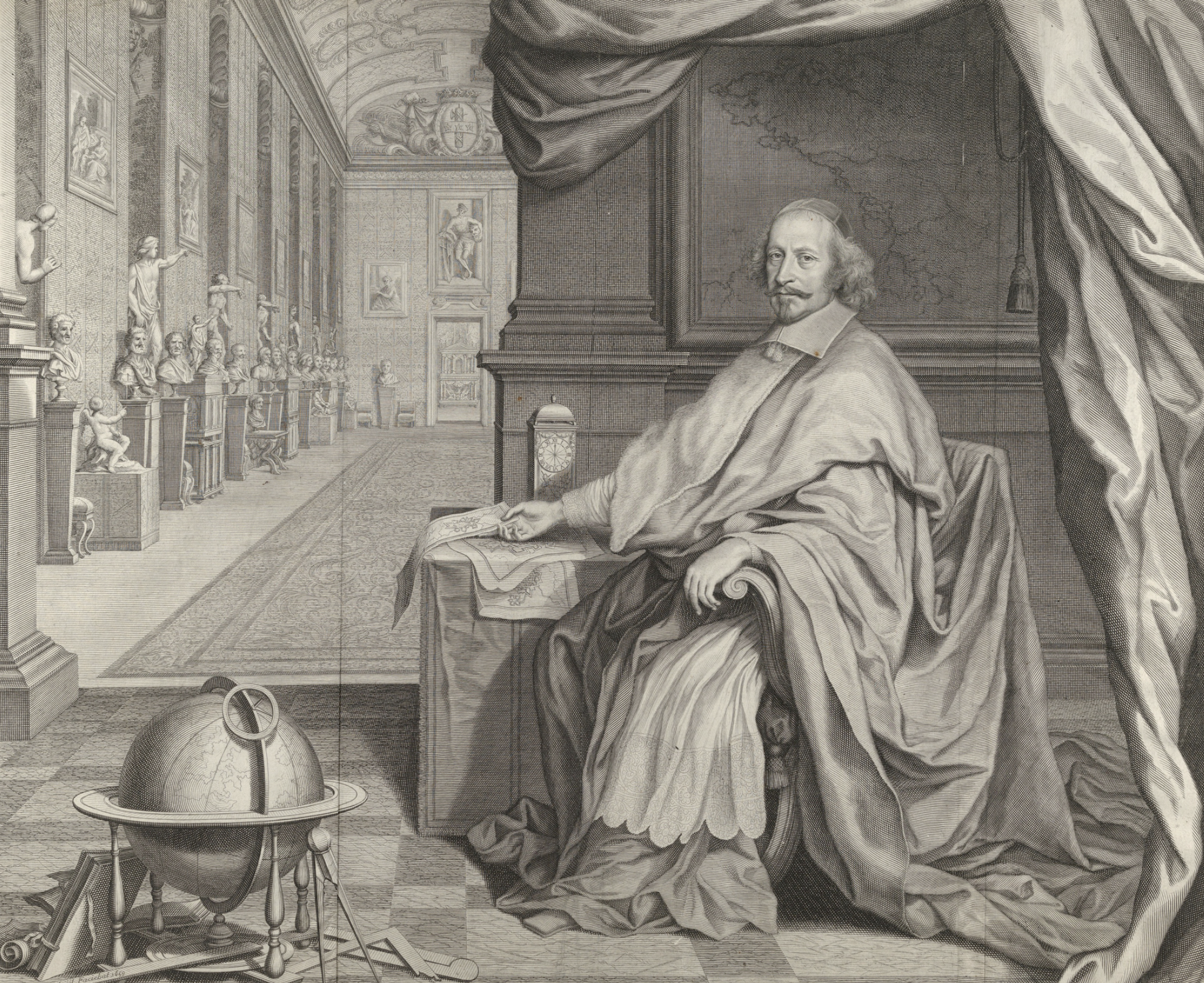 Before his death, Cardinal Mazarin influenced everything from the people who had access to the king to the design of royal buildings and the amassing of the royal collection. In the 1650s, with the architect Louis Le Vau, Mazarin sought to expand the Palais du Louvre to include a theater, library, and galleries for the king's paintings, sculptures, and other objects.