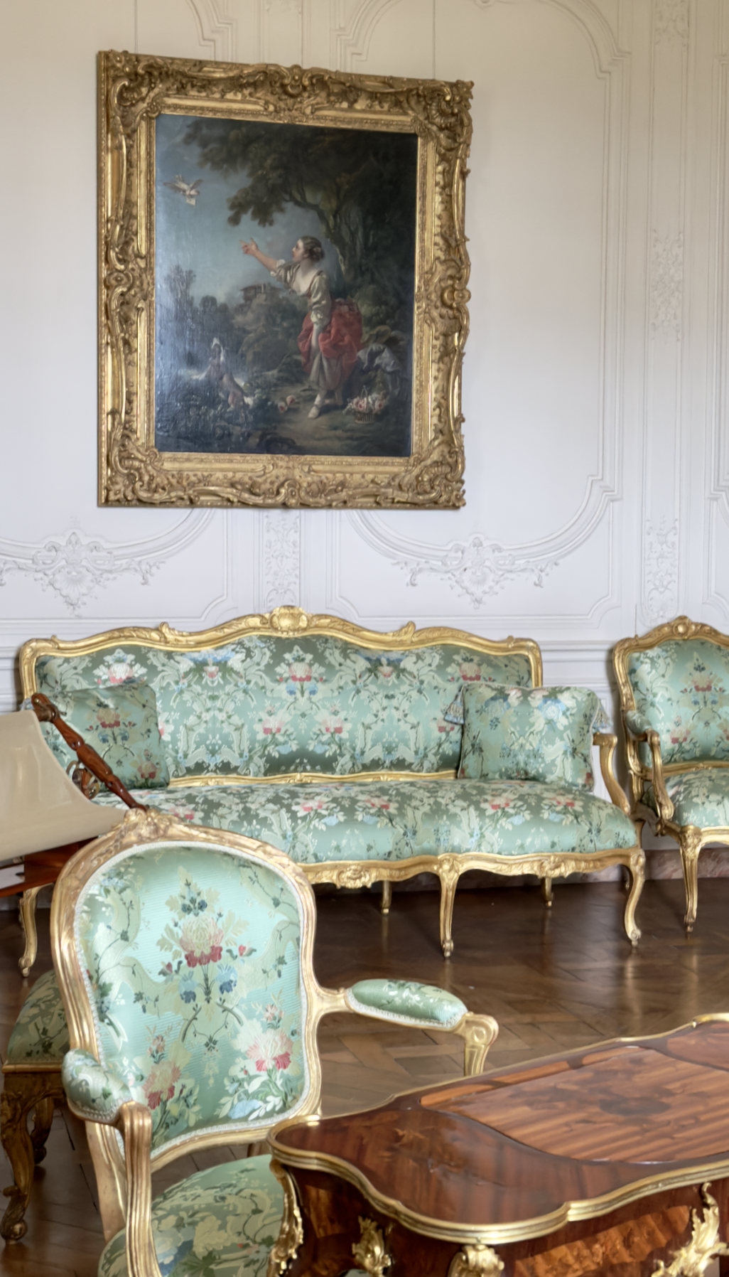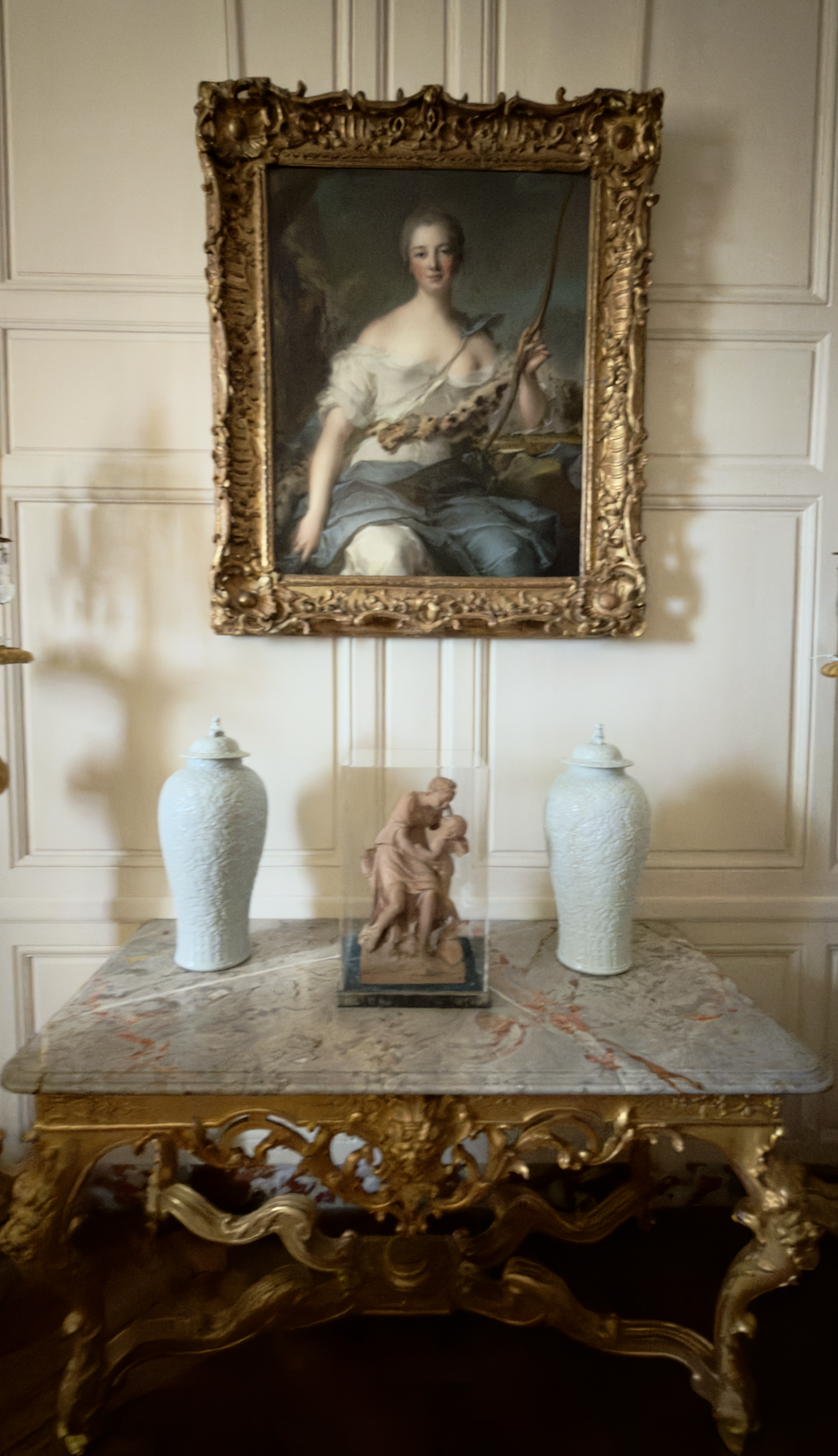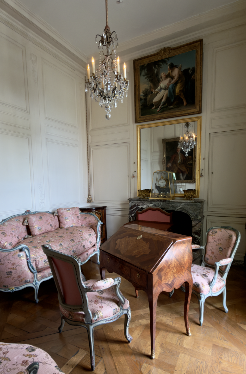 Other paintings include the Love Letter by Francois Boucher in the large sitting room and Diane et Calisto by Noel Hallé in what was originally her small dining room. A beautiful painting, also by Boucher, of Alexandrine, the Marquise's daughter, painted in 1749.