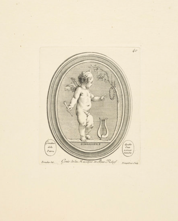Her final years at court were spent surrounded by her books and art, but she kept herself very busy, thanks to Jacques Guay, the official engraver to the king. Guay had spent many years in the atelier of Francois Boucher as a lithographic engraver. One day, he met Joseph-Antoine Crozat and saw his massive collection of engraved stones, and fell in love. Taking on the role of the engraver to King Louis XV, who asked him to create a collection of stones engraved with major moments of his reign. While spending time at court, he met Pompidour and took her on as a student. An entire engraving press was moved into her apartment, and every tool imaginable was used to etch her own stones. Five of these remain, and I saw two of them in 2023 at a special exhibit at Versailles dedicated to Louis XV. Needless to say, I almost died.
