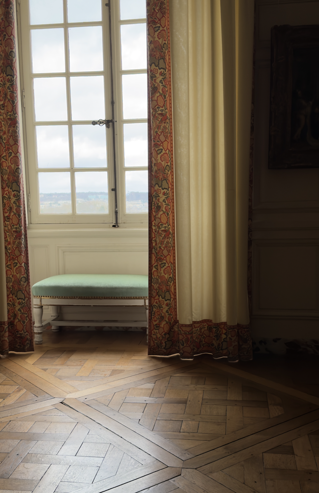 I was lucky enough to see her first private apartment at Versailles last week. Normally closed to the public, they do offer special private visits from time to time, given in French. The rooms are installed over the Mercury, Apollo, and Mars rooms, as well as the private rooms of Louis XV.