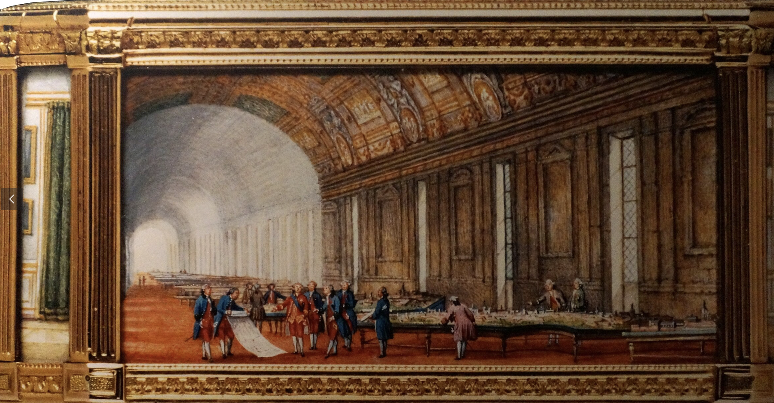 The coat of arms of the Fouquet family is of a single squirrel, Fouquet meaning squirrel in old French. And you guessed it, the coat of arms of Jean-Baptiste Colbert was that of a snake. Colbert had that added into the carpet that sat in the very center of the Grande Galerie.