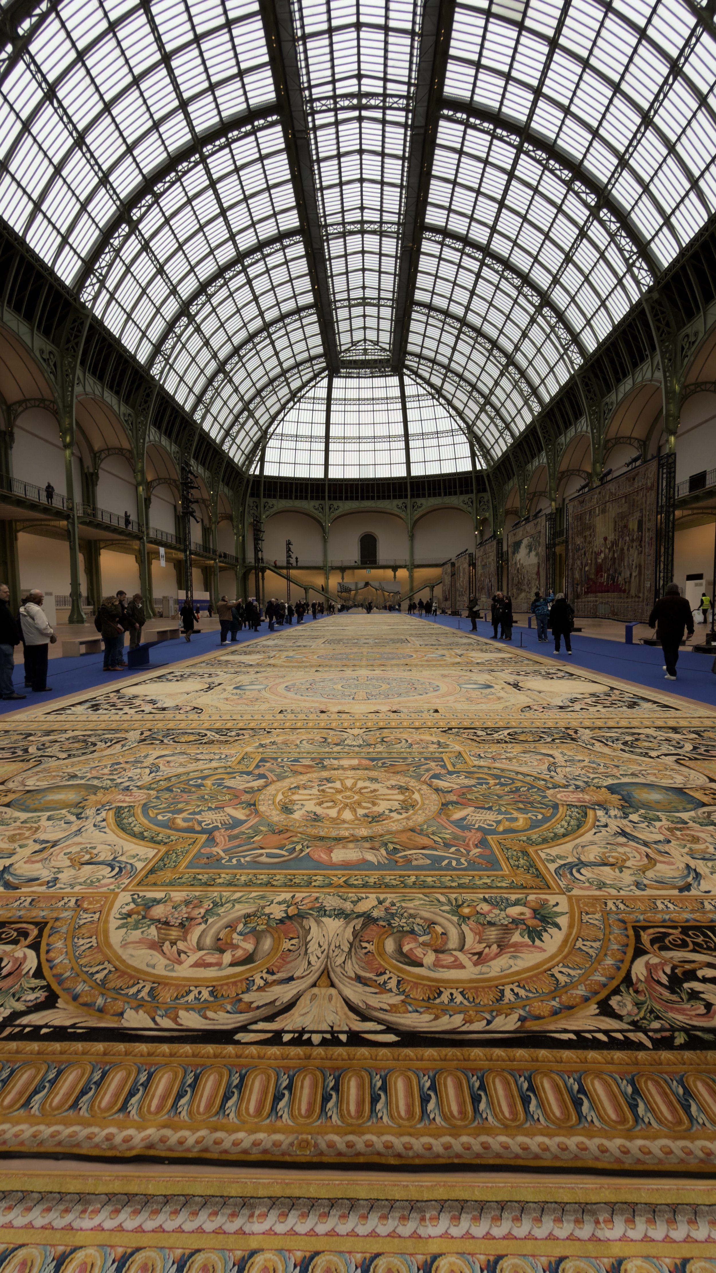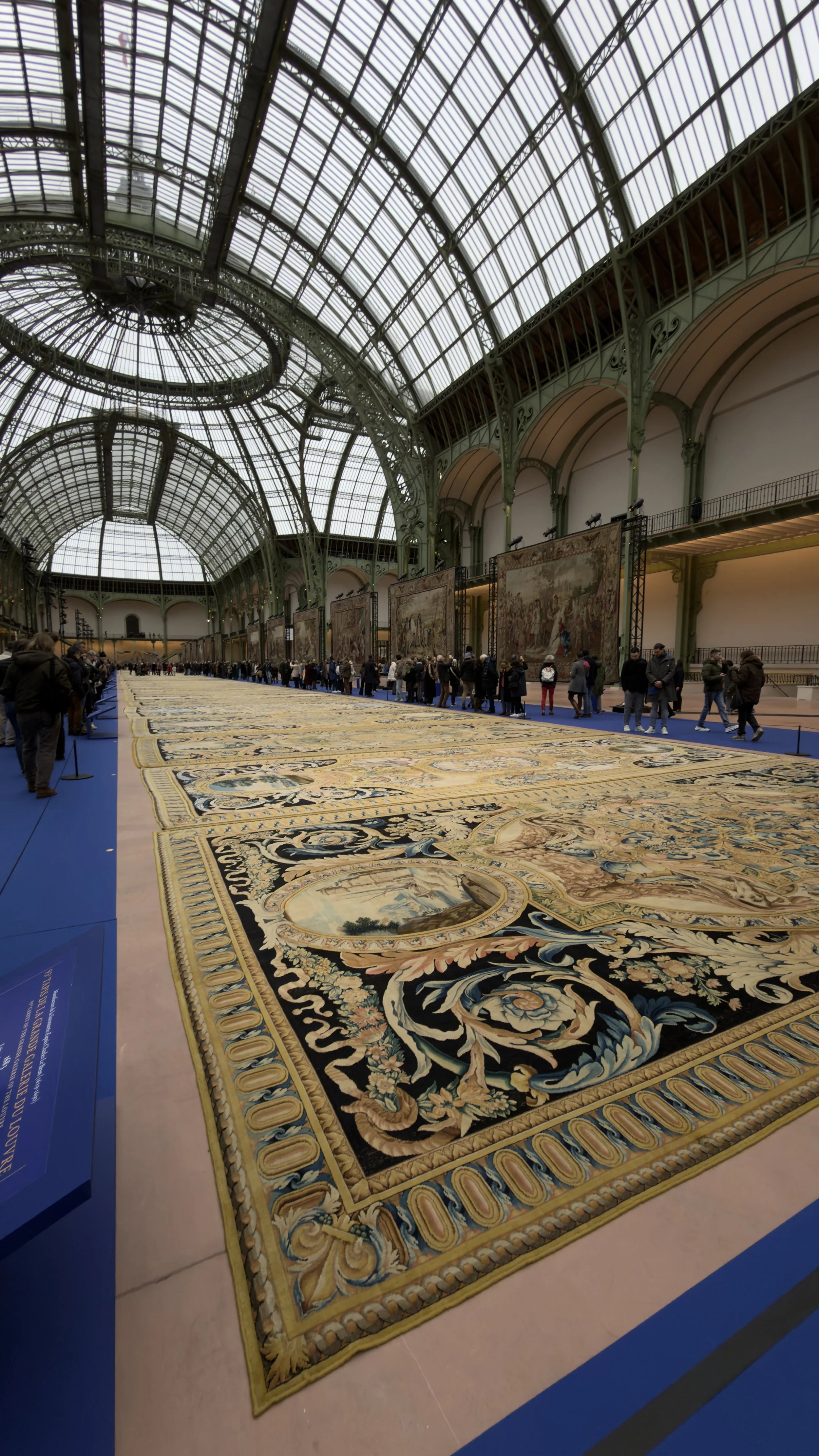 For just seven days, under the beautiful glass-and-iron roof of the Grand Palais, there is a sight that hasn’t ever been seen since they were created in the 17th century. Stretched out across the over 650-foot-long nave, thirty-one of the 93 carpets intended for the Palais du Louvre and created by Charles le Brun under Louis XIV are a sight to behold.