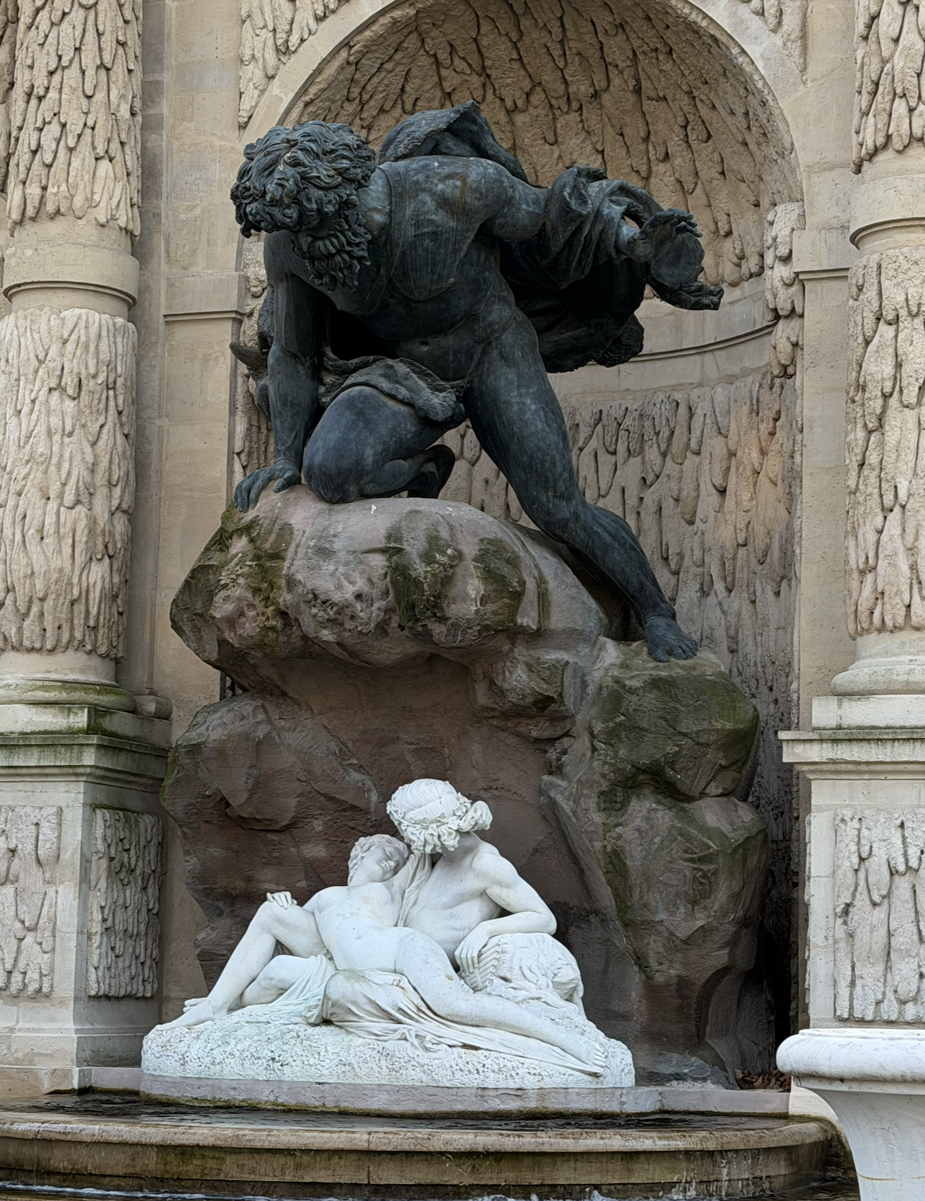 Architect Jean-Francois Chalgrin restored the damaged elements with sculptor Claude Ramey bringing the Seine water nymph back to life, and Francisque Duret was tasked with the Rhone. They opted not to recreate the arms of Marie de Medici and added a statue of Venus into the central niche.