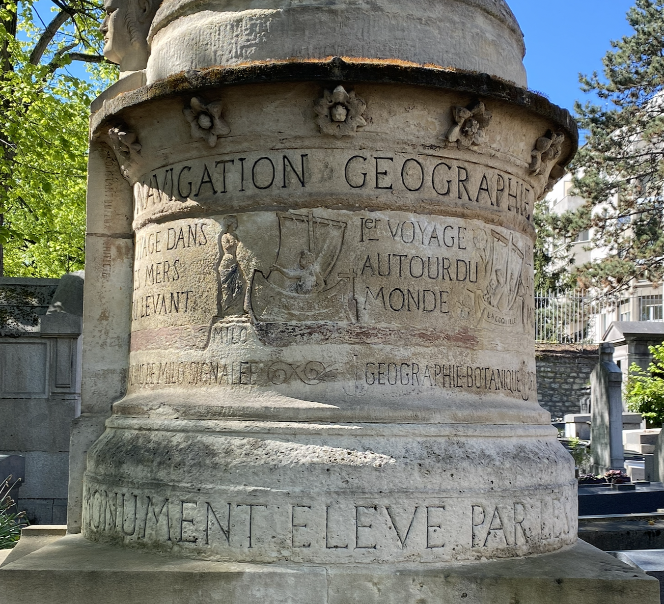 He rode the wave of this story until his death and into the afterlife. A visit to the Montparnasse cemetery in the 15th division, near the western edge, is the final resting place of the Dumont d’Urville family, who tragically died on the same day in a train accident in Meudon. I first spotted this grave years ago and noticed the Venus de Milo carved in relief on the side. She is there beside a ship with a lone figure who is pointing at the statue. Way to hold onto your story long after you are gone.