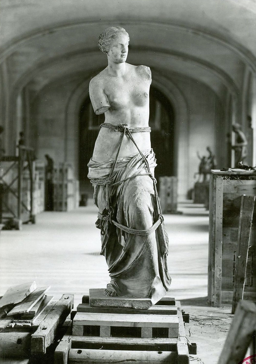 This was all a test run for what would happen again in 1914 with the advent of World War I. At the end of August, the most important pieces of art were once again packed up as the Great War began. Venus and more than 900 other works of art were packed in crates in a frenzied few days and taken to the Gare d’Austerlitz to be taken to the large Église de Jacobins in Toulouse as German planes flew above Paris. Venus returned once again in December 1918, but her biggest move was yet to come.