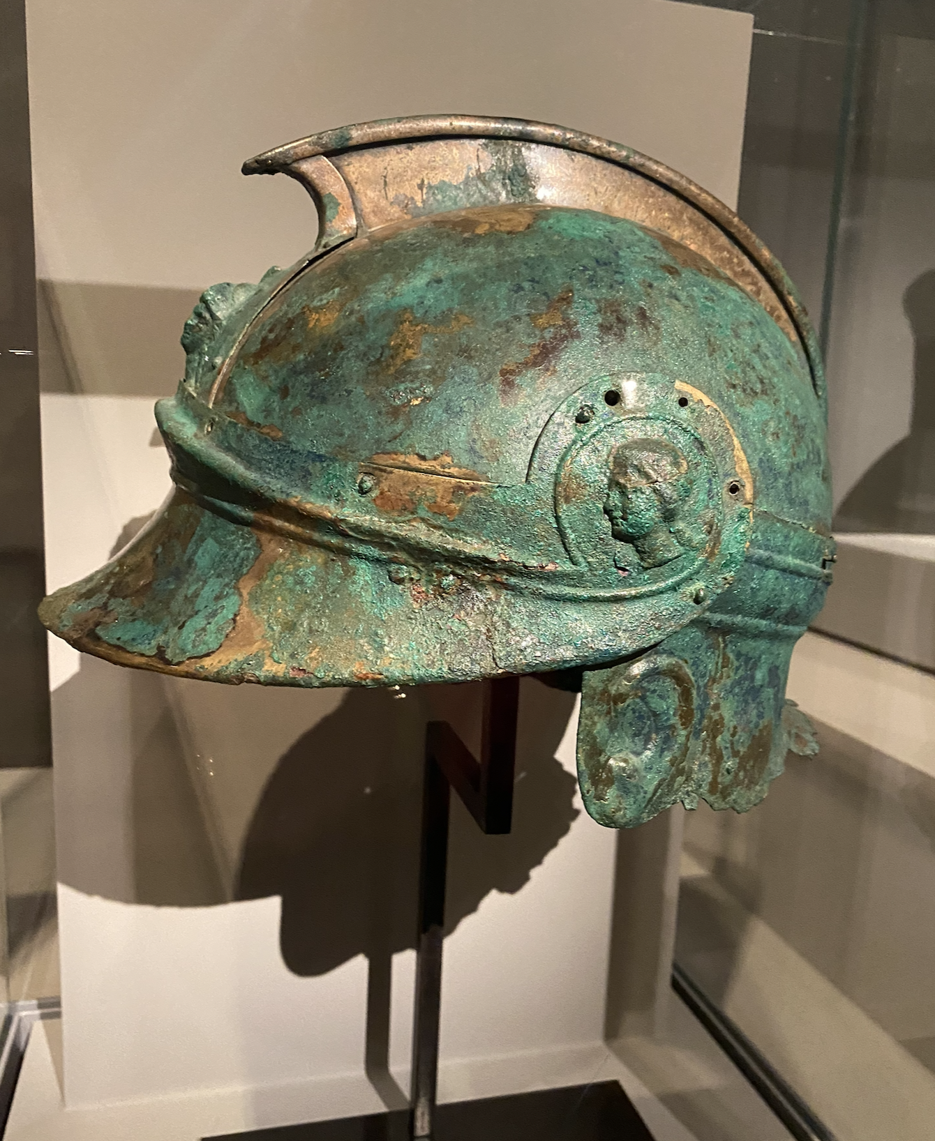 Today, she remains in this room, which gets natural light from the sun mid-morning, flooding the red Languduc marble walls. A few items also found on Milo are in a nearby case, including a hand holding an apple, part of an arm, and a foot with a sandal and three pillars.